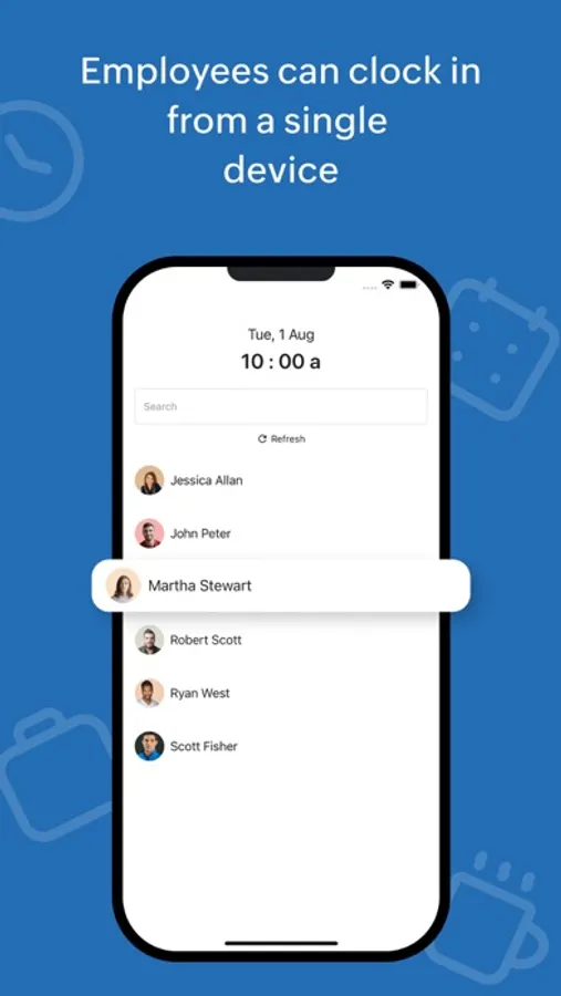Zoho Shifts Kiosk is a simple and easy-to-use time-clocking app for your tablet, iPad, or mobile device you can set up at your workplace, dedicated solely for your employees to clock in and out of their shifts quickly.