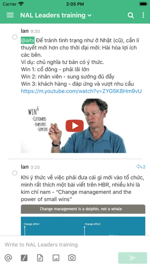 + Direct chat: Có thể giao tiếp trực tiếp 1-1 với mọi liên hệ.