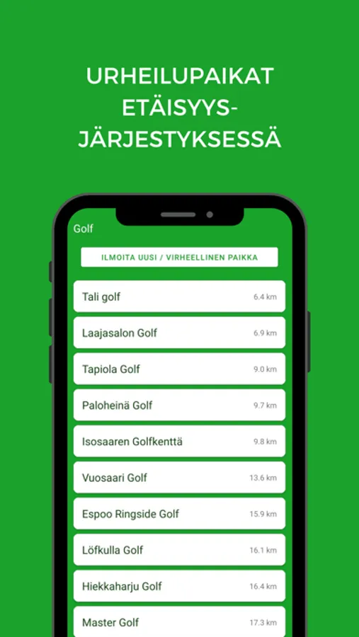 *Vaivattomasti urheilupaikat etäisyysjärjestyksessä