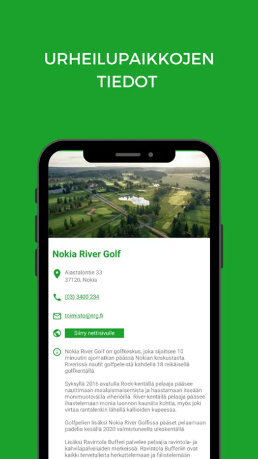 *Suorat linkit sovelluksesta urheilupaikkojen omille nettisivuille ja navigointimahdollisuus kohteeseen