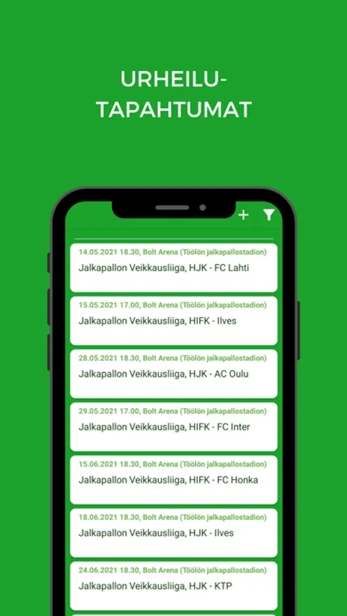 *Premium-sivu mahdollisuus urheilupaikoille, jolloin vielä kattavampi informaatio sovelluksessa