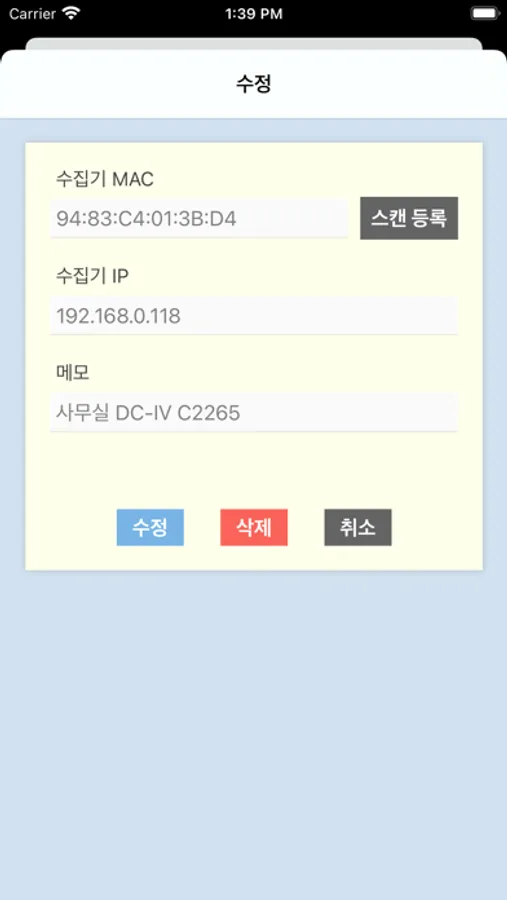 - 수집기 Wi-Fi에 연결하여 수집기 네트워크 설정