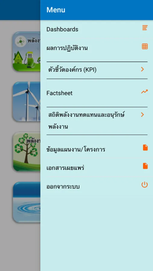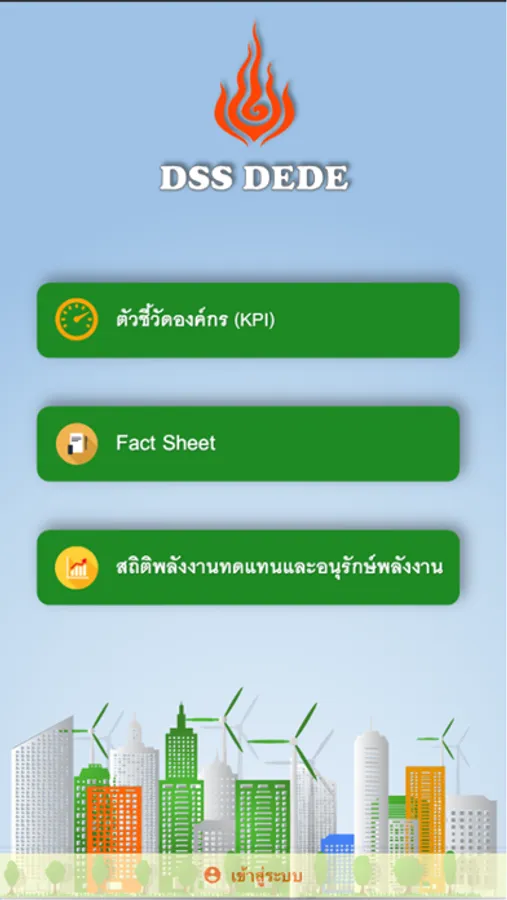 ระบบ Decision Support System (DSS) บน Mobile Application ของกรมพัฒนาพลังงานทดแทนและอนุรักษ์พลังงาน (พพ.) กระทรวงพลังงาน เป็นเครื่องมือช่วยสนับสนุนในการตัดสินใจเกี่ยวกับการจัดการ การรวบรวมข้อมูล การวิเคราะห์ข้อมูลแก่ผู้บริหาร และเพื่อเผยแพร่ประชาสัมพันธ์ข้อมูลแก่บุคคลภายนอก ผ่าน Smart Phone และ Tablet โดยได้แบ่งส่วนการทำงานเป็น 3 เมนู ดังนี้