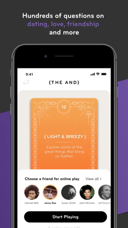 - In Person Play - Play a friend face-to-face with {THE AND} questions presented in front of you on the App