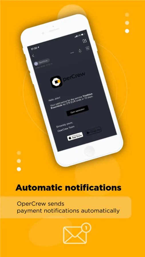Take your productivity to the next level with your smartphone! Install OperCrew, assign services to customers and accept payments directly in the app. Your customers and you will receive notifications of upcoming payments only when you need them. And you'll focus on your work, not your record keeping!