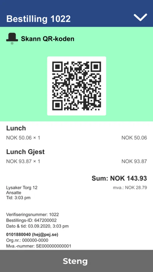 Scan QR koden du mottar etter fullført betaling ved kvitteringsskriveren
