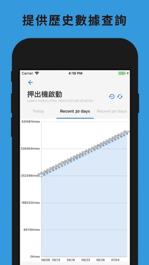 提供歷史數據查詢功能,幫助使用者掌握設備狀況。