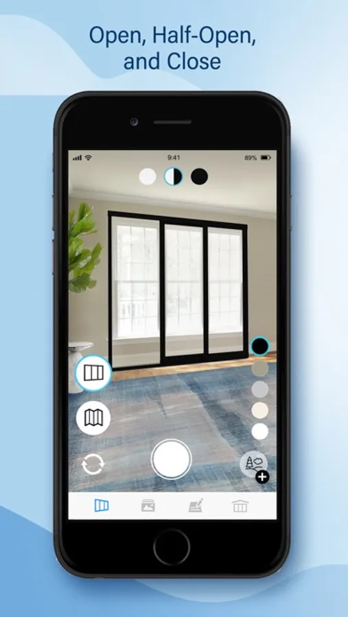 Select the color of your moving glass wall and add a background image of your view from your phone’s camera.