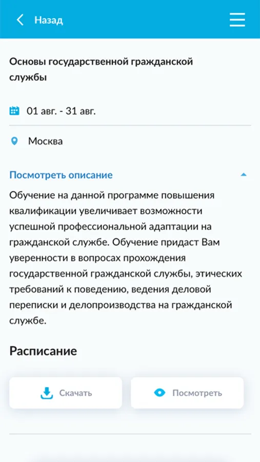- Увидеть свое расписание и узнать какие курсы Вас вскоре ожидают;