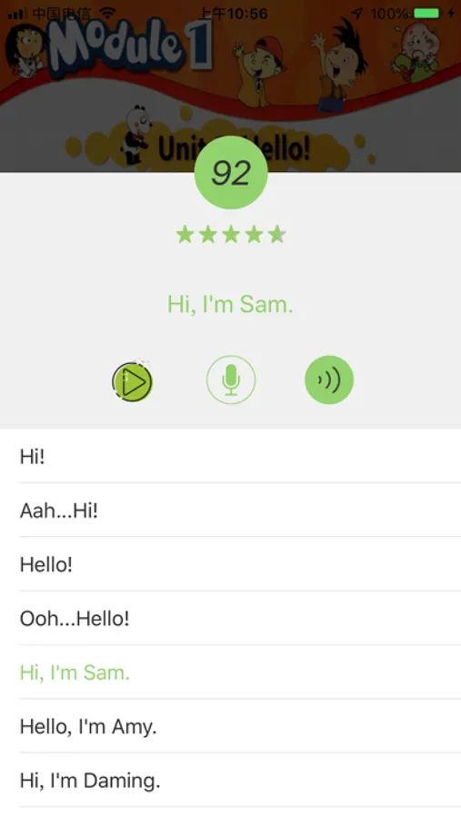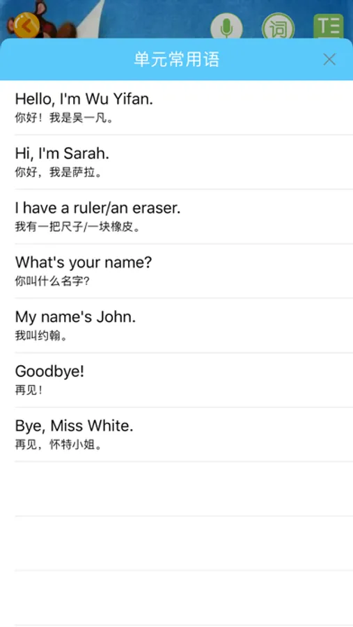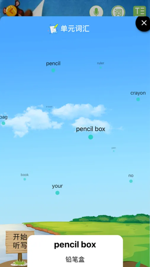 同步教学教材课程, 有声双语点读,跟读,评测发音。 单词学习积累,人工智能听写。 随时随地学英语