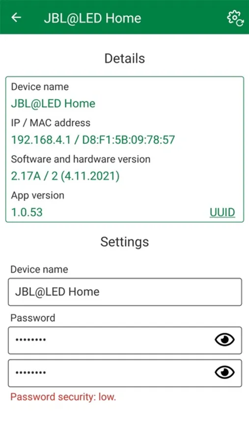 The app can be used in conjunction with the JBL LED SOLAR Control and the JBL LED SOLAR NATURE. A JBL LED SOLAR EFFECT with coloured LEDs is needed in addition to the JBL LED SOLAR NATURE for colour effects such as moonlight, sunrise and sunset.