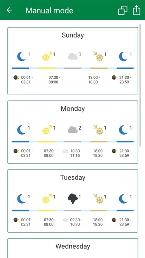 If you cannot find what you are looking for in this selection, you can create your own individual theme programme in manual mode, in all light colours, using functions for moonlight, clouds, lightning, sunrise and sunset.