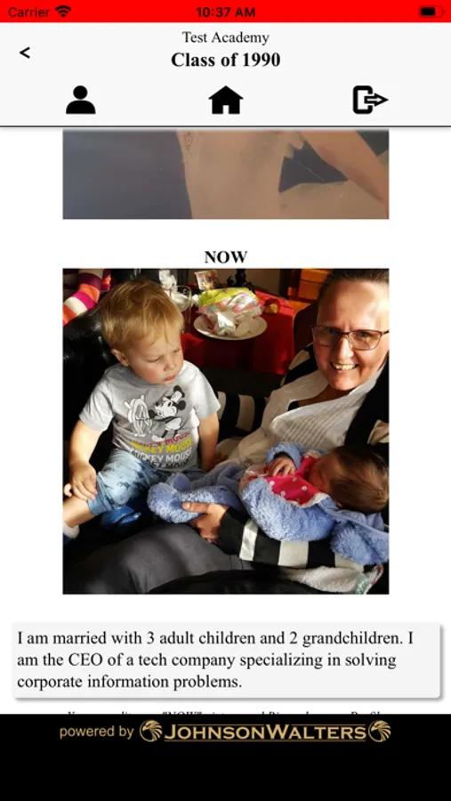 As a class student, you can add your profile, showing a photo of you in the class and a photo of what you look like now. You can also add a short bio to tell the other users of the App what you are doing now, a perfect way to quickly get them updated on what happened to you since then.