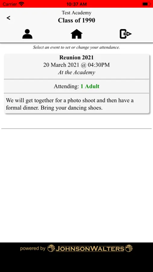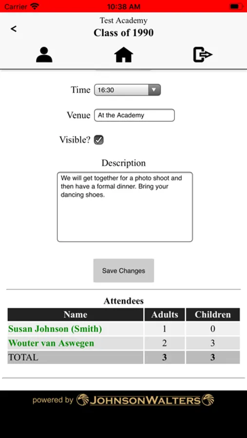 Using the App, students in a class can RSVP to any listed event for that class, indicating how many adults and children will be attending. As the administrator of the class, you can see the exact number of people that will be attending.