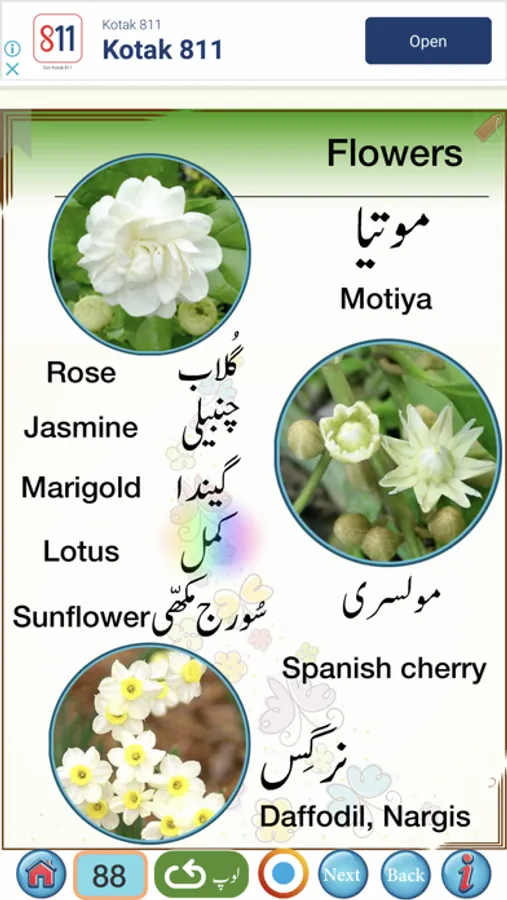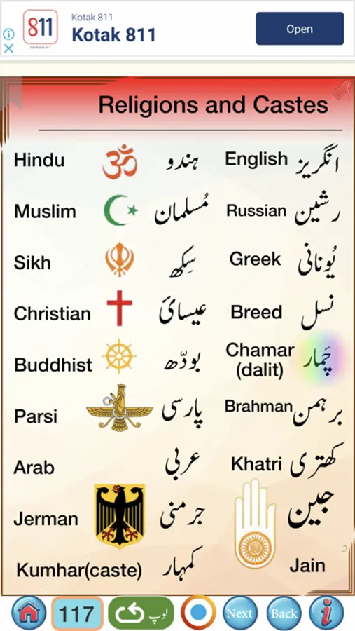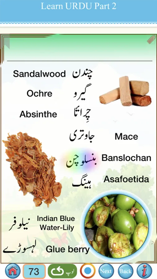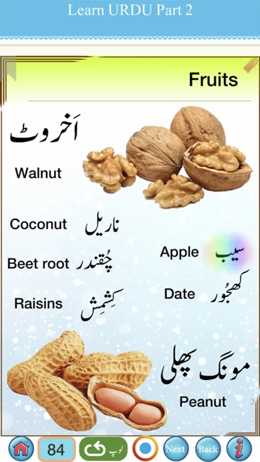 Urdu words and sentences with Hindi meanings are provided. To learn Spoken Urdu from Hindi easily , Clear picture with clear audio are provided for all Urdu words .