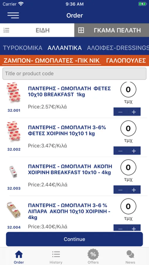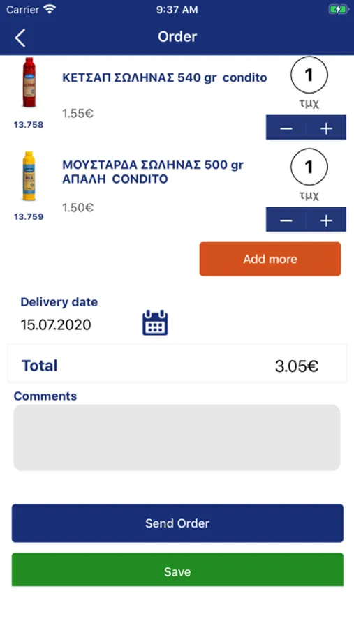 Δυνατότητα καταχώρησης & αποθήκευσης παραγγελίας ακόμα και χωρίς δίκτυο (για την αποστολή της παραγγελίας απαιτείται η σύνδεση στο δίκτυο)