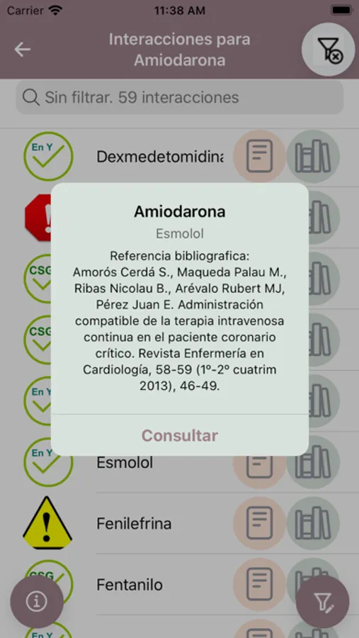 Las recomendaciones que brinda está app proceden de artículos publicados en revistas científicas acreditadas de acceso online que pueden visualizarse desde el link que se proporciona dentro de la propia app. La información sobre compatibilidad de fármacos que ofrece se corresponde, exclusivamente, con la extraída de la bibliografía de referencia mencionada en cada caso. Si un fármaco no aparezca en el listado no significa que sea compatible con otras especialidades. Tan sólo que no hay datos publicados, o que éstos no han sido utilizados por el momento, para la elaboración de esta herramienta de consulta.
