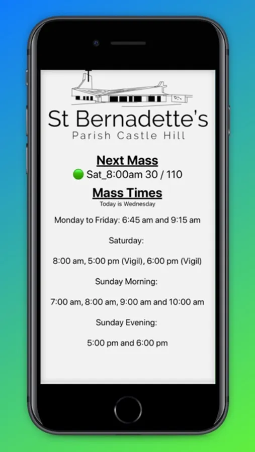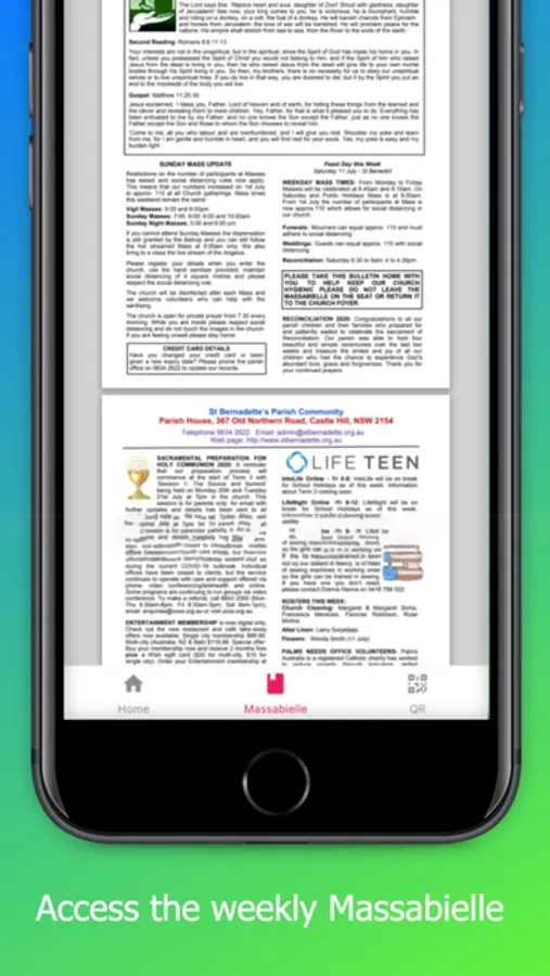 This App allows parishioners to access Mass Times, View Live Mass Capacity, View Paperless Massabielle, Sign Up for QR code to sign in on arrival at the parish.