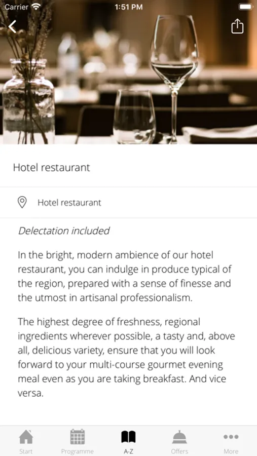 The app offers possibilities for orientation in the hotel and surroundings, so that you can find your way around quickly on site.