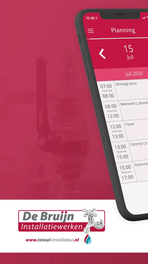 Deze app kan worden gebruikt door medewerkers van De Bruijn Installatiewerken in Rucphen om gegevens in te zien en om op een eenvoudige manier te communiceren met de medewerkers op kantoor.
