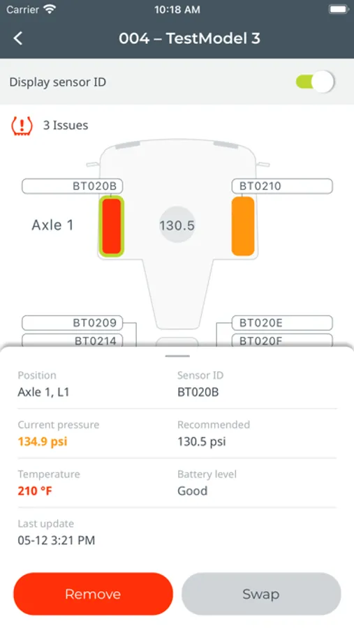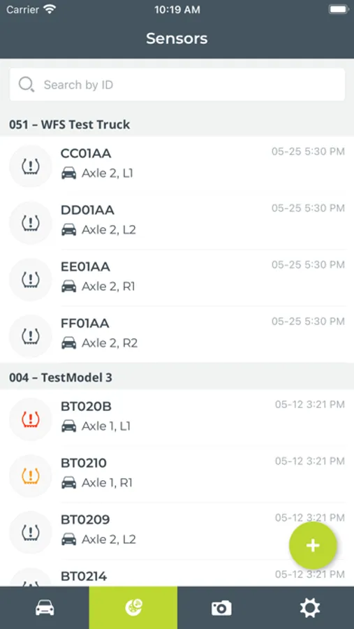 TPMS Tools also shows which vehicles in your fleet currently have TPMS issues. This enables a tyre dealer or workshop technician to take proactive action and/or easily identify vehicles that require attention during a routine inspection.