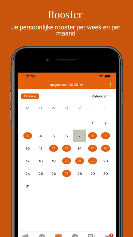 - Je rooster inzien per week of per maand en deze downloaden naar je eigen agenda!