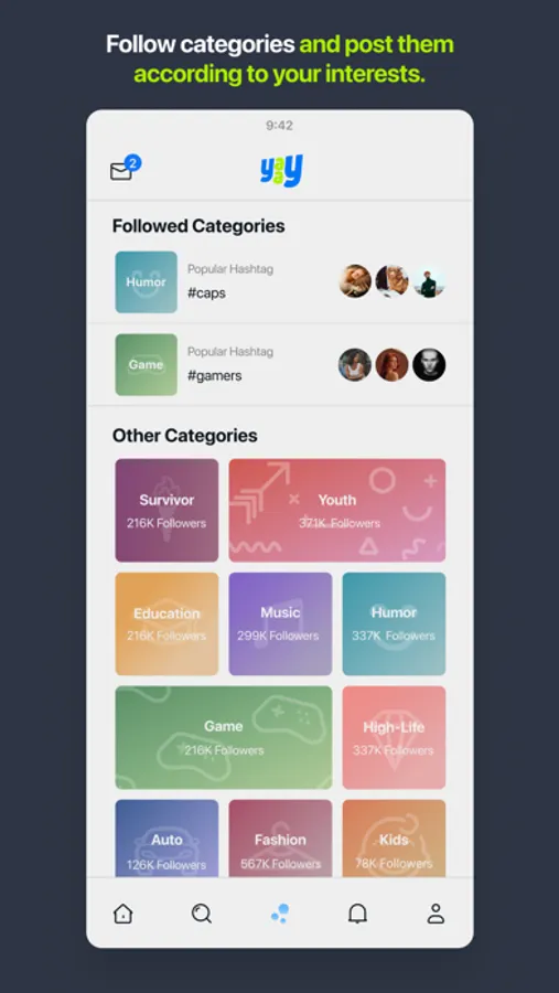 CATEGORIES: Don't get lost among thousands of contents! Follow and share content selecting categories, create your feed according to your interests.