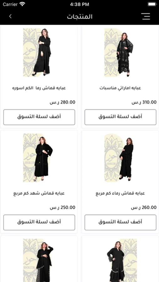 تطبيق حور للعبايات يضم اقسام و تصاميم متنوعة التي تناسب أكبر شريحة ممكنة.