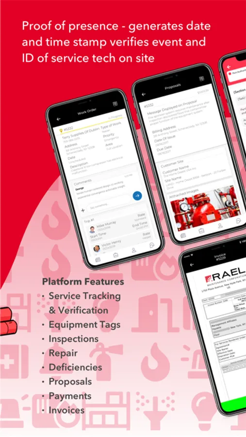 - Proof of presence - generates date and time stamp verifies event and ID of service tech on site