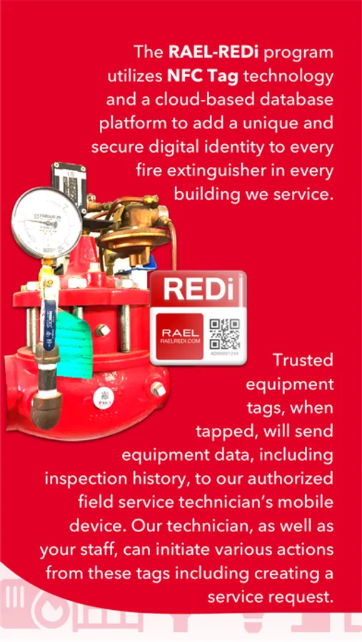 The RAEL-REDi program utilizes NFC Tag technology and a cloud-based database platform to add a unique and secure digital identity to every fire extinguisher in every