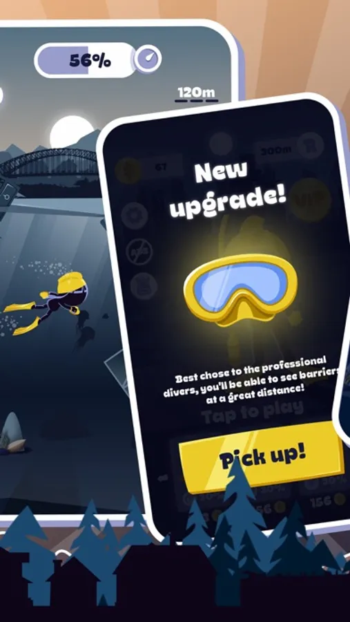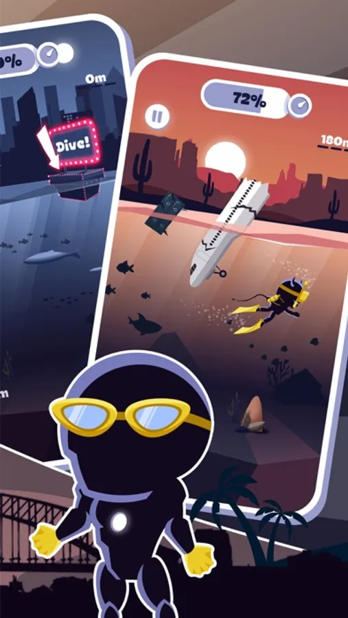 Hurry up! Dive into the water and overcome obstacles in your path. Grab new wetsuits and equipment, level up your skills, and swim faster and further!