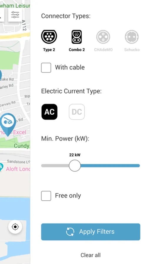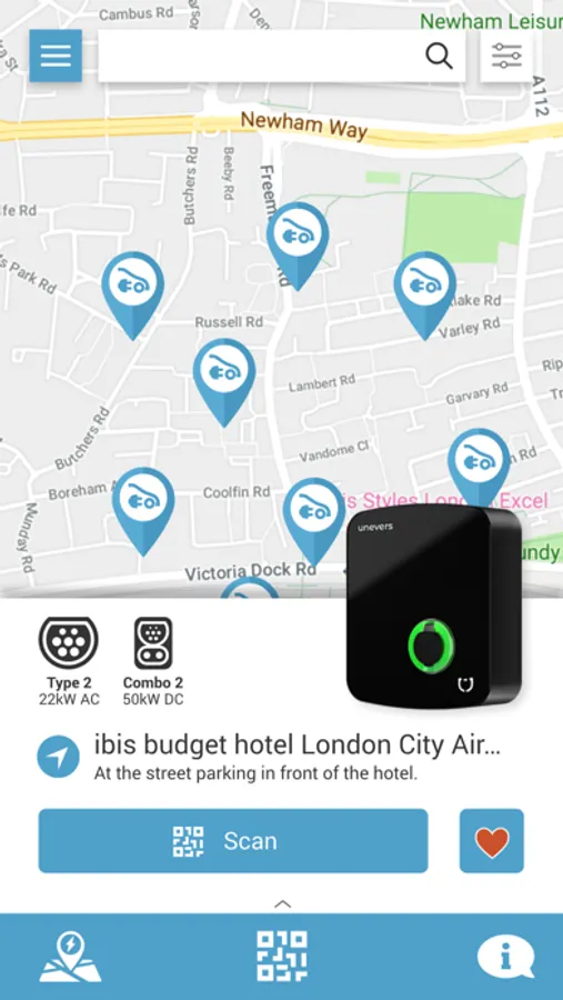 С приложението лесно можеш да видиш локациите със зарядни станции.