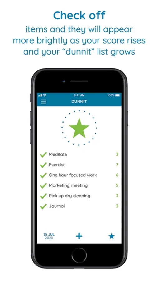 Decide what daily habits you want to form—exercise, meditation, an hour of focused work, an act of kindness, whatever—and put them on a recurring daily list. Add any one-off tasks or chores you want to get done that day. As you meet your daily goals and tick off items, they will appear more brightly on the list as your have-done list grows.