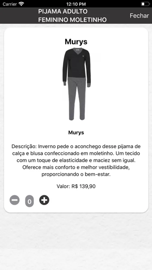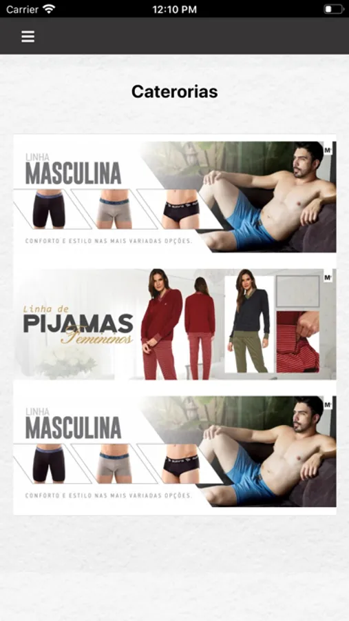 Aplicativo de pedido de roupas intimas, linha fitness e pijamas