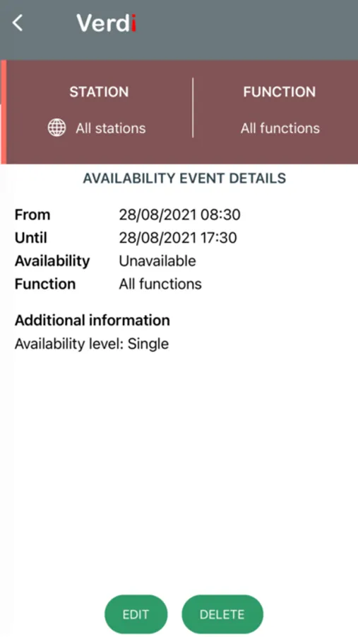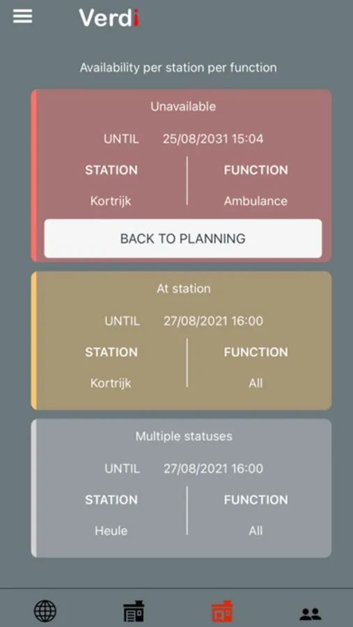 The VERDI APP allows users to adjust their effective current availability or to pass on a planning. VERDI will immediately take this into account when alerting.