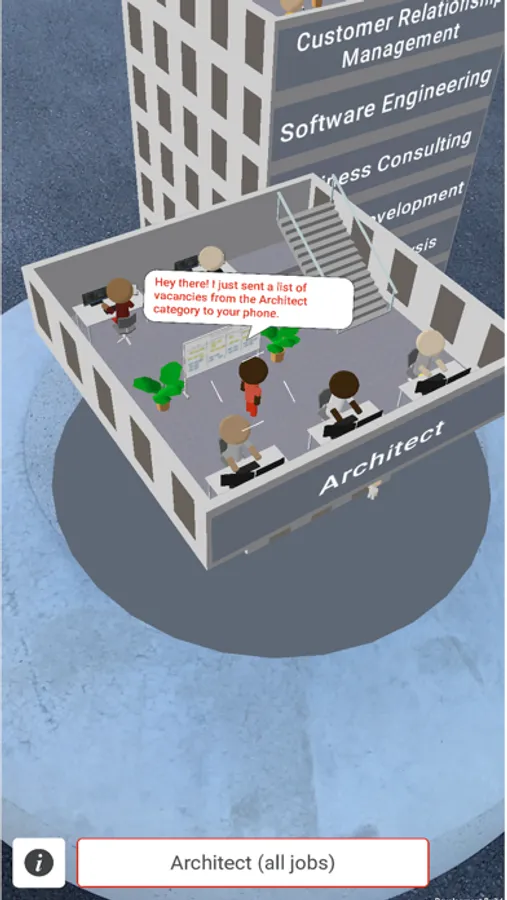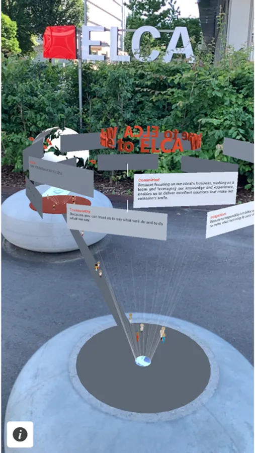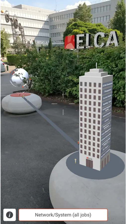 Built for ELCA's new office building F62 in Zurich, this Augmented Reality app showcases the company in a playful way. Find the markers on the stones in front of the building to access company locations, facts & figures and a skyscraper filled with open jobs! The information is displayed in 3D in Augmented Reality and invites you to explore it in detail.