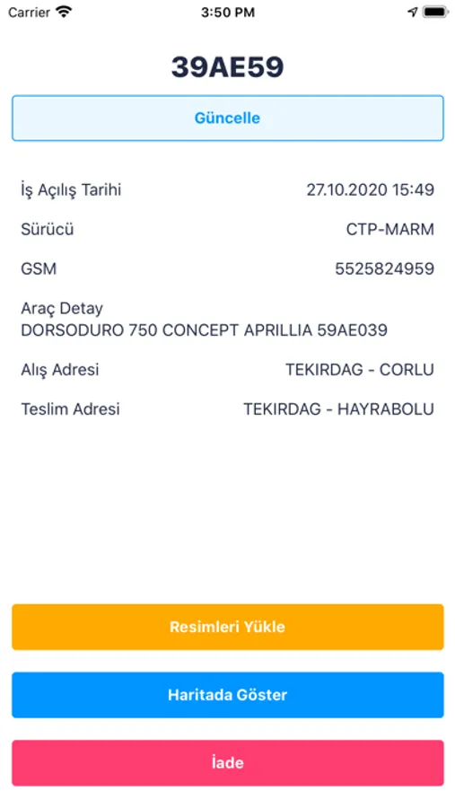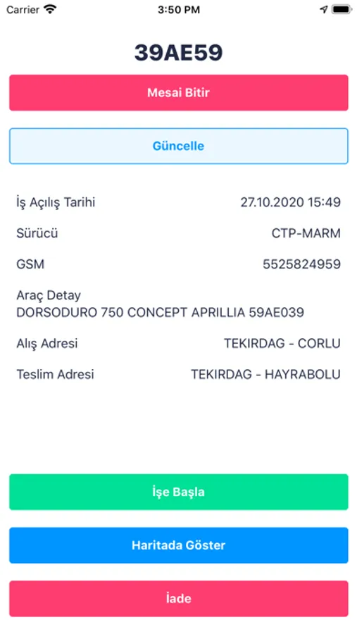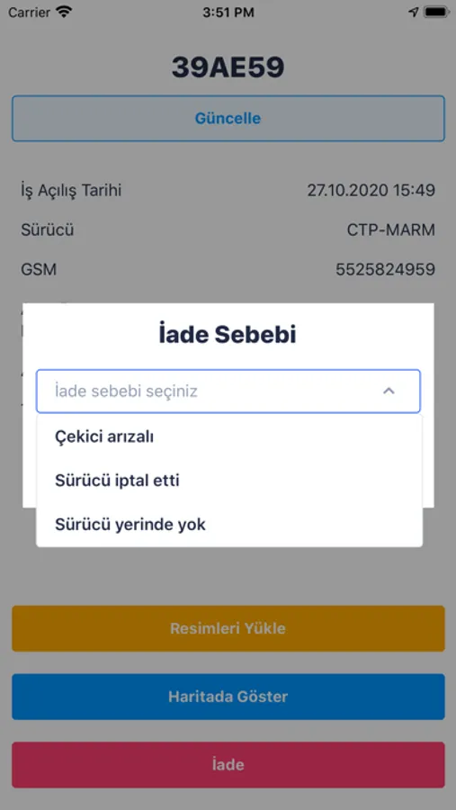 Çekim iş emrini kabul etme. Çekim iş emrini reddetme. Tahmini varış zamanını belirleyebilme. Çekim iş emri detaylarına ulaşma (sürücü, araç, rota vb. bilgileri). Çekim iş emri iptali (sürücüye ulaşamama, sürücünün iptal isteği vb.). Çekilecek araç fotoğraflarını yükleme. Çekim işlemine başlama. Çekim işlemini merkeze geri iade etme (araç arızası vb.). Çekim işlemi tamamlama. Çekilmiş araç ve teslim makbuzu fotoğraflarını yükleme. Çekim iş emrini tamamlama. Çekim kilometresinin belirlenmesi. Çekim rotasının belirlenmesi.