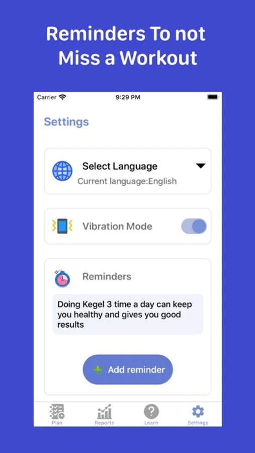 - Training reminders. ( Kegel reminder-Daily reminders will help you not miss a workout)
