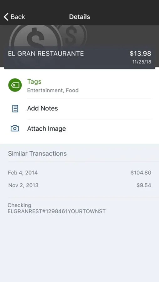 - Keep your transactions organized by allowing you to add tags, notes and photos of receipts and checks.