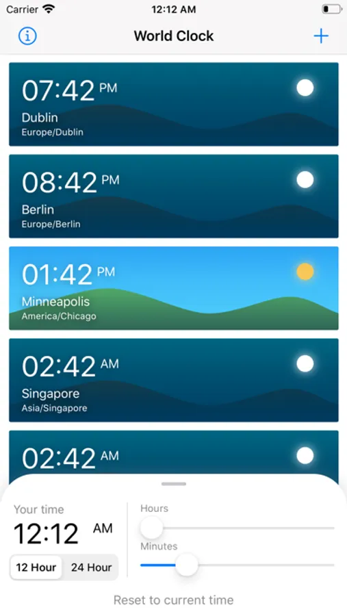 • Control Slider - Use the sliders to change your current time and it will accordingly convert the time of cities added on your homepage.