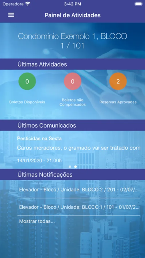 Visualizar cobranças em aberto da sua unidade e obter 2ª via de boletos (com recálculo automático de multas e juros);