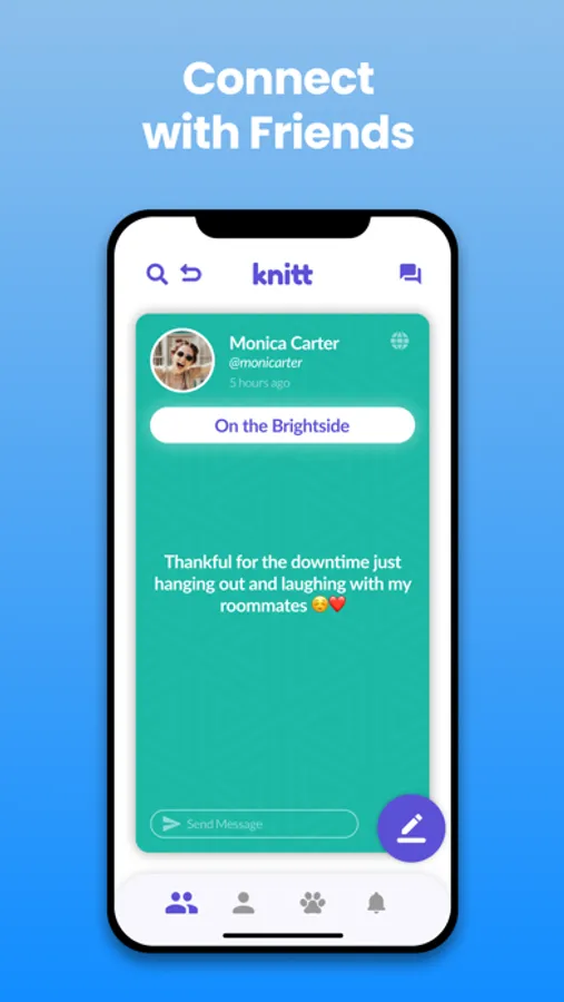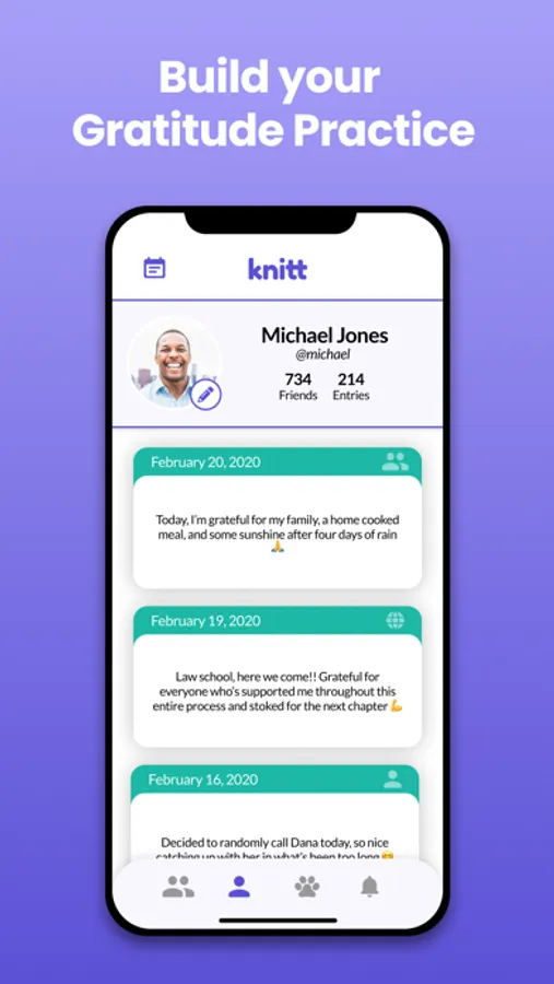 Knitt is a social gratitude journal. Build your gratitude practice, and connect with friends!