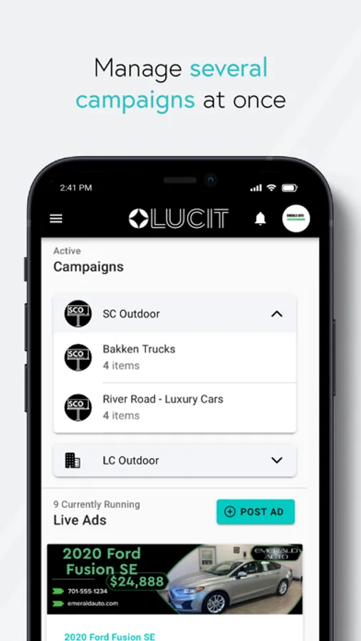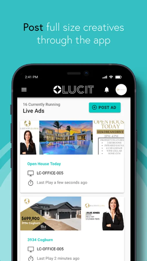 Lucit is ushering the Out of Home advertising industry into a new age by creating cutting-edge technology that’s easy to use for both operators and their clients. By connecting directly to inventories of different industries such as real estate, automotive, agriculture and big equipment dealers, and more, Lucit creates seamless, beautiful creatives and puts the control in the hands of the advertiser. Anytime, Anywhere. This saves the operator labor hours, secures their renewals, and optimizes creative and campaign plays.
