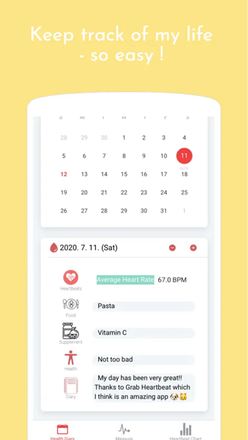The GRAB Heartbeat is proud of its special "my health diary" where you can scribble and revisit your daily wellness states.
