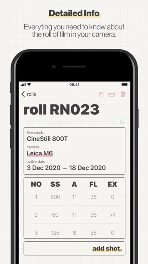 This all lives in the filename of your images so you don't require a metadata reader to get this info out. Our app not only presents your data in this format but it also allows other information like roll names and film stocks used.
