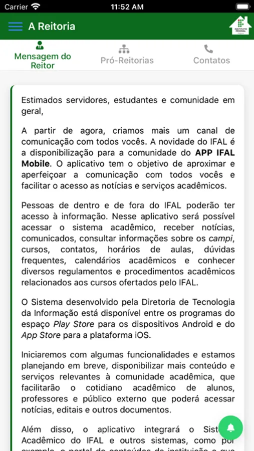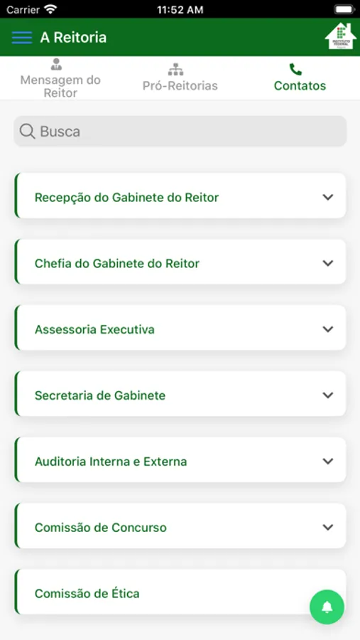- Pesquisar por contatos dos diversos setores da Reitoria;