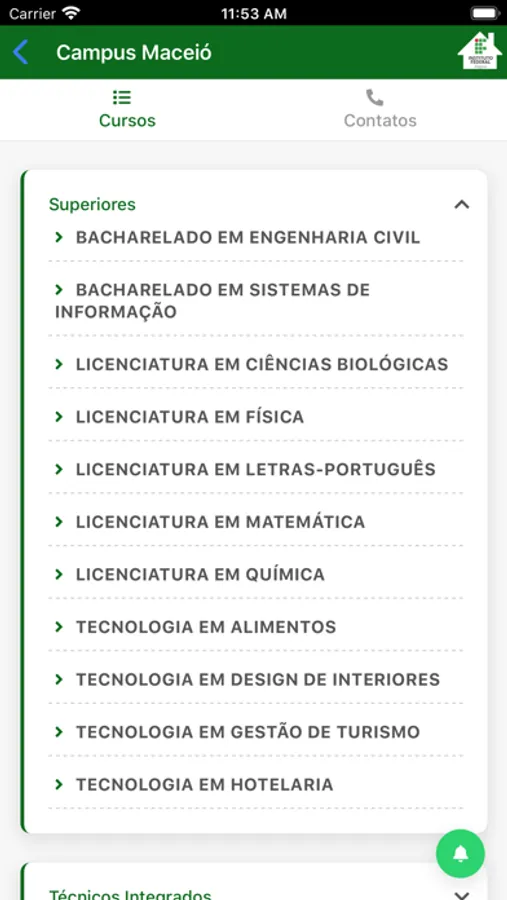 - Listar os cursos disponíveis em cada campus;