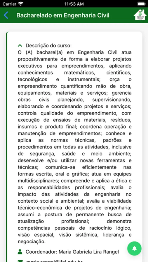 - Obter descrição completa de cada um dos cursos ministrados e contatos dos coordenadores;