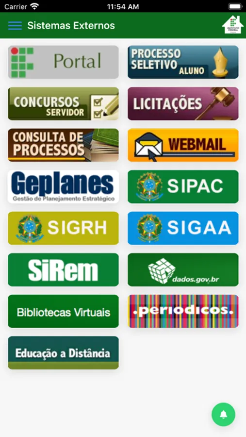 - Acessar links para os sistemas externos, como SIPAC, SIGAA e SIGRH;