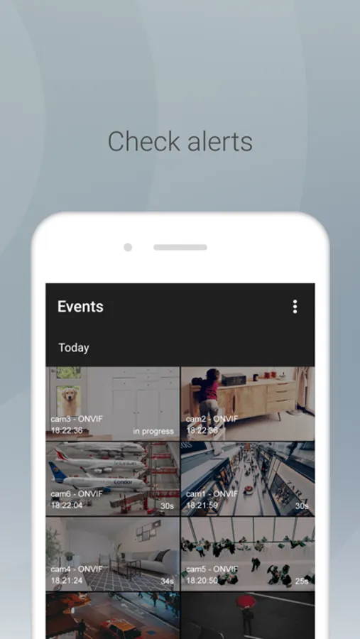 • receive automatic push- and e-mail notifications of suspicious movements or sounds